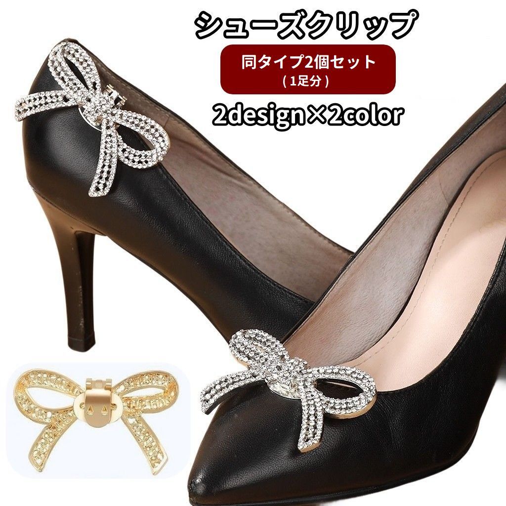 シューズクリップ 2個セット 1足分 シューパーツ レディース 女性用 ビジュー 靴飾り ラインストーン キラキラ シューズアクセサリー 可愛い おし