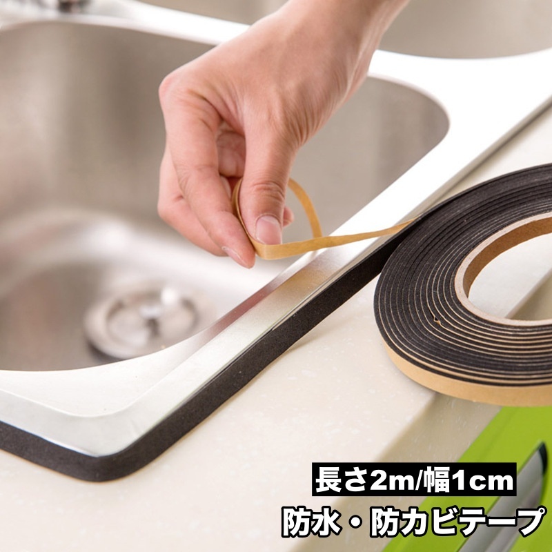 防水テープ 防カビ 補修 2m 1cm 汚れ防止 防油 DIY 水回り コーナー キッチン バス トイレ 台所 浴室 シンク 隙間 すき間 窓 玄関