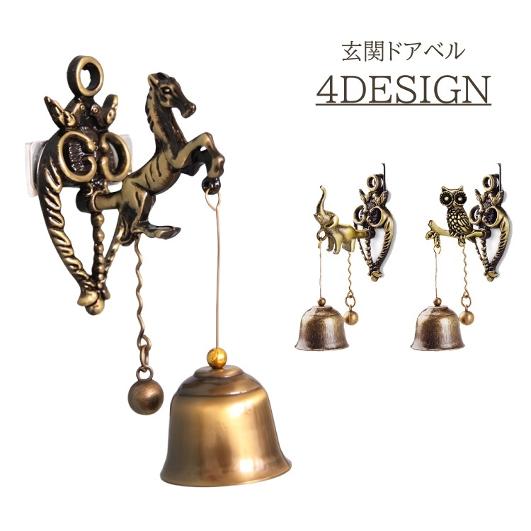 ドアベル ドアチャイム アンティーク レトロ 玄関 入口 チャイム 鐘 引き戸 フクロウ 梟 アニマル ウマ 麒麟 キリン おしゃれ ヴィンテージ ベ
