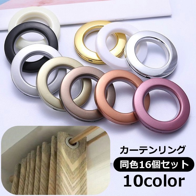 カーテンリング 16個セット スライドリング リングランナー カーテン 太め 突っ張り棒用 カーテンポール用 取り換え カラバリ豊富 おしゃれ かわい