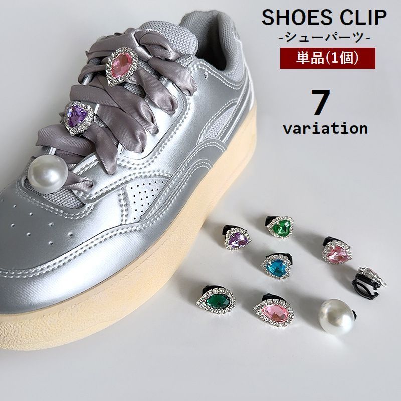 シューパーツ シューズクリップ 単品 1個 レディース 女性用 ビジュー ラインストーン フェイクパール ハート型 しずく型 靴飾り シューズアクセサ