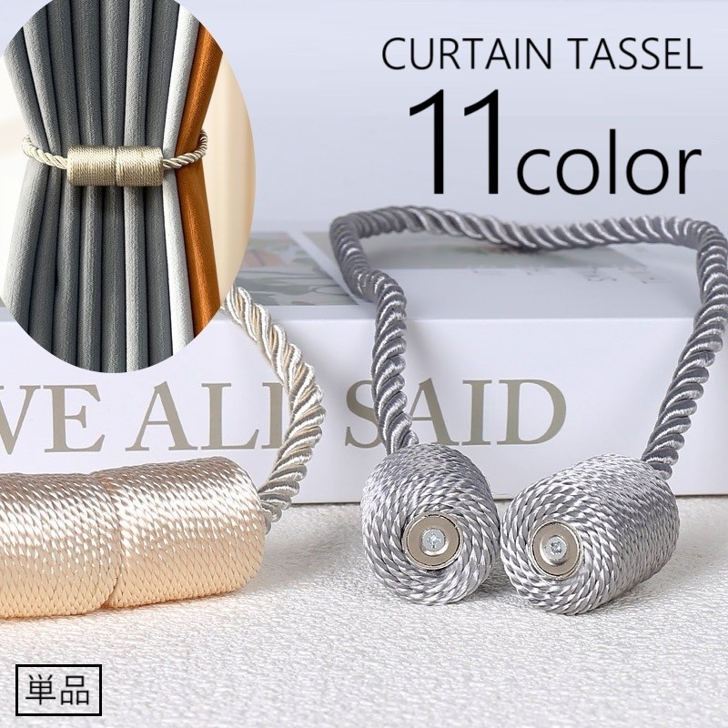 カーテンタッセル 単品 1本 マグネット式 カーテン留め カーテンホルダー マグネットタッセル ロープ風 ねじれ ツイスト 光沢感 おしゃれ シンプル