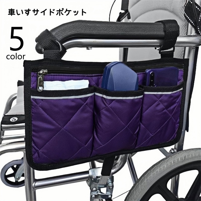 車椅子用バッグ 車イス用収納ポケット 車いすサイドポケット 収納袋 小物入れ かばん シルバーカー ポケット付き 大容量 介護用品 サイド収納袋 ファ
