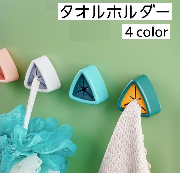 タオルホルダー 日用品雑貨 タオル掛け タオルハンガー 三角形 布巾かけ プッシュ 押し込み 粘着テープ 便利グッズ コンパクト おしゃれ かわいい