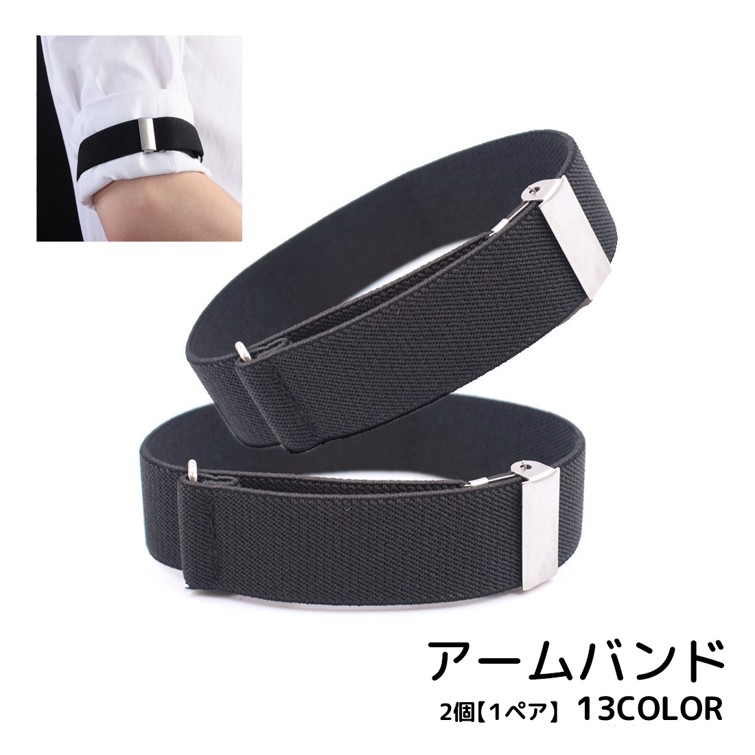 アームバンド アームベルト 1ペア 男女兼用 シンプル おしゃれ 袖留め 袖まくり 袖丈調節 調整