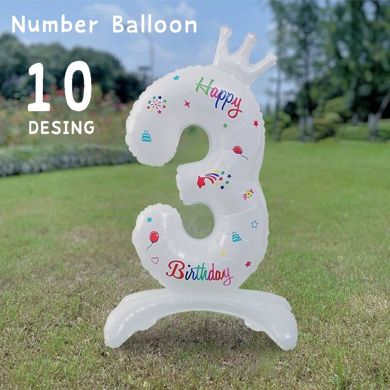 ナンバーバルーン 数字 アルミ風船 誕生日 記念日 飾り付け デコレーション 室内装飾 王冠 クラウン スタンドタイプ 英字入り ハッピーバースデー