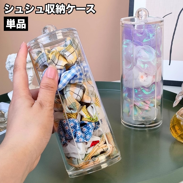 シュシュ収納ケース 単品 1個 ヘアアクセサリー収納 シュシュホルダー 筒 円筒形 取り出し口付き 卓上 クリア 透明 陳列ケース 髪飾り 髪留め ヘ