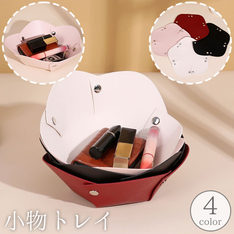 小物トレイ 小物入れ トレー 卓上 机上 収納 小物置き スナップボタン レザー調 フェイクレザー インテリア 単色 無地 シンプル おしゃれ