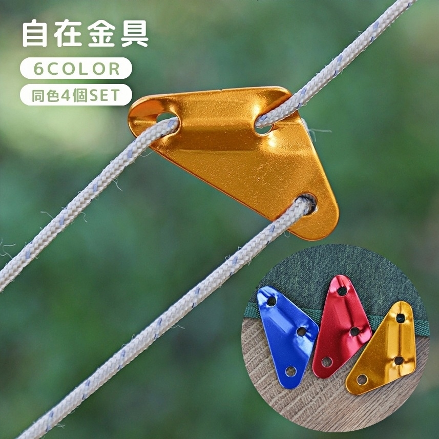 自在金具 4個セット ロープテンショナー 三角形 テント用品 ロープストッパー ロープ固定 コードスライダー ロープアジャスター ラインロック テント