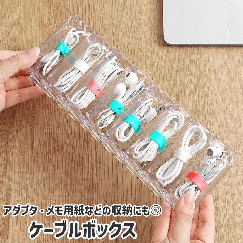 ケーブルボックス ケーブルケース 小物入れ 8マス シンプル USB ケーブル コード 配線 イヤホン アダプタ メモ用紙 小物 収納 保管 整理 ボ