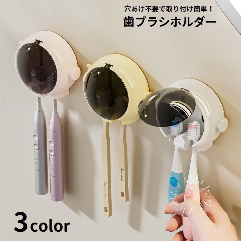 歯ブラシホルダー 壁掛け 穴あけ不要 粘着テープ 貼り付け カバー付き 吊り下げ 引っ掛け 浮かせて収納 日用品 取り付け簡単 省スペース 洗面所 バ