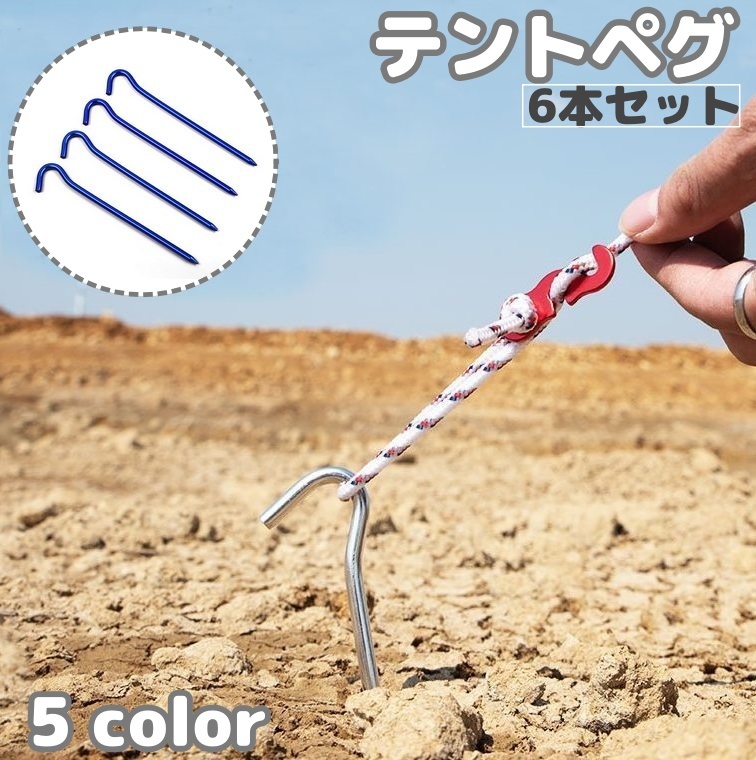 テントペグ 6本セット テント用 固定ピン 固定用釘 18cm タープペグ 杭 ロープ止め テント設営用具 固定具 キャンプ用品 アウトドア バーベキ