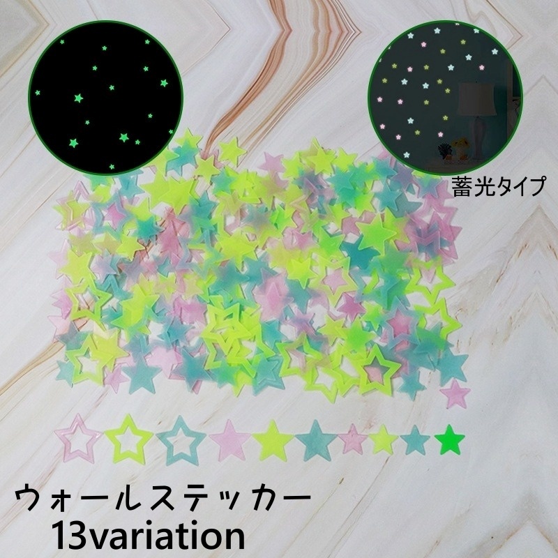ウォールステッカー 蓄光 壁ステッカー 壁飾り 星 スター インテリア デコレーション 寝室 おしゃれ 光る 室内装飾 部屋飾り 夜光 イベント パー