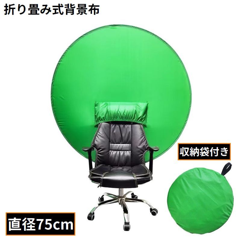 グリーンバック 直径75cm 円形グリーンスクリーン 緑バーチャル背景布 クロマキー 折り畳み式 椅子取付 zoom 動画撮影用