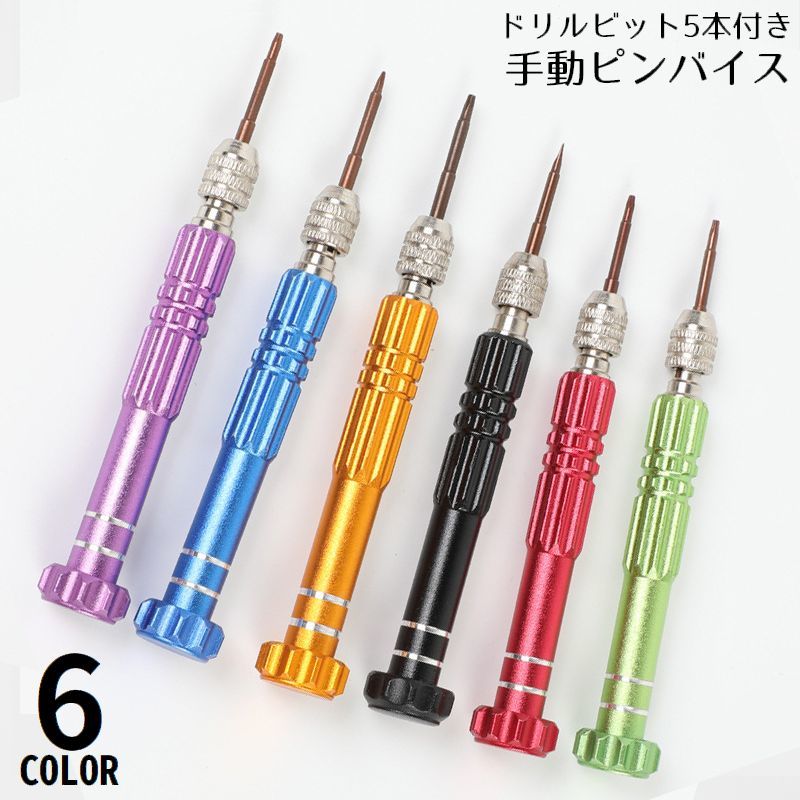ピンバイス ハンドドリル ドリルビット5本付き 替え刃 手動 工具 ツール 精密作業 穴あけ レジン DIY 木工 プラモデル