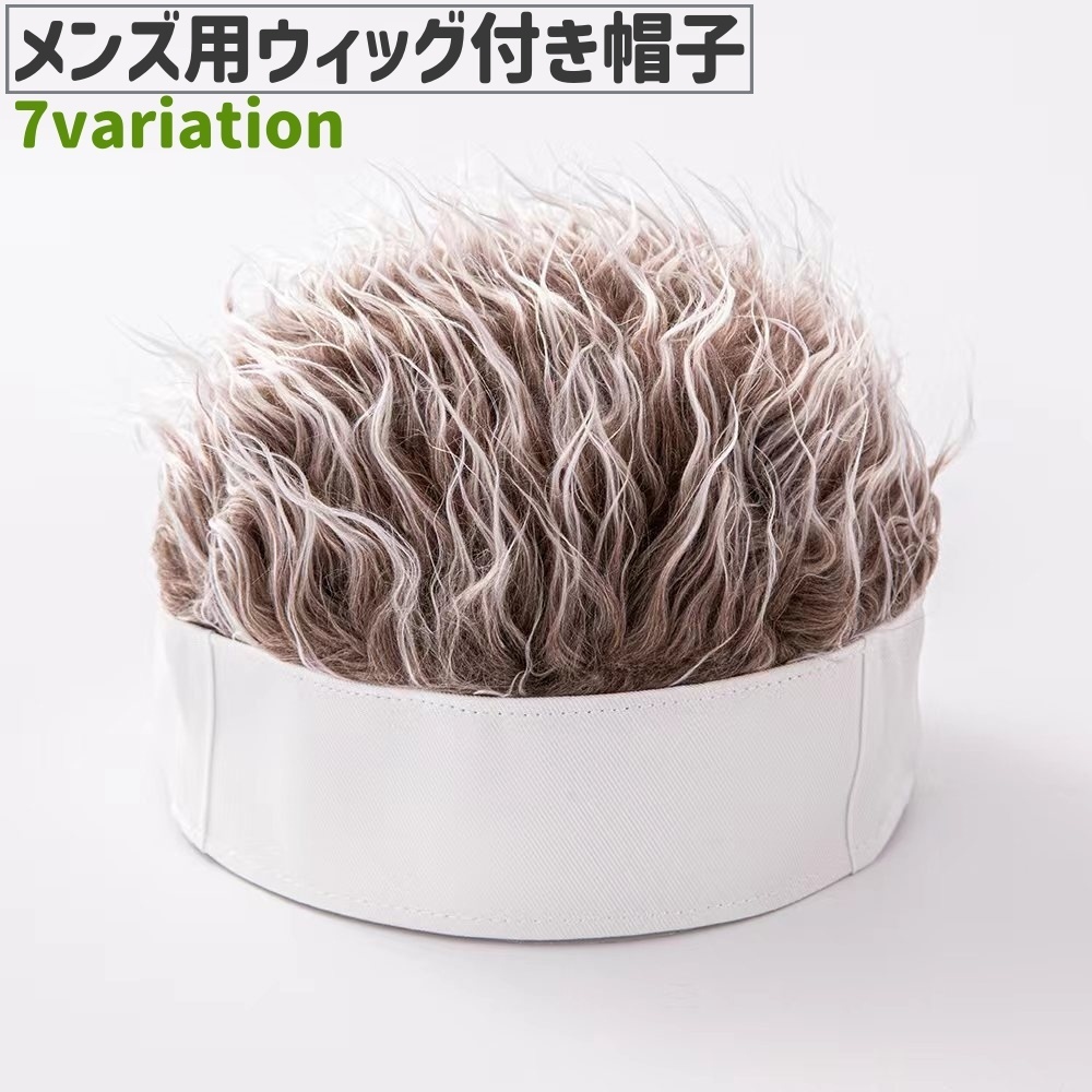 帽子 メンズ 男性 紳士 ぼうし ハット ウィッグ付き かつら付き 髪付き 一体型 調節可能 マジック テープ 面ファスナー 無地 迷彩柄 黒 白 シ