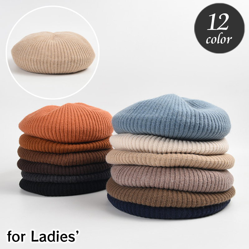 ベレー帽 ベレーキャップ 帽子 ぼうし レディース リブ ニット シンプル ベーシック おしゃれ かわいい 大人可愛い 無地 単色 定番 お出かけ カ