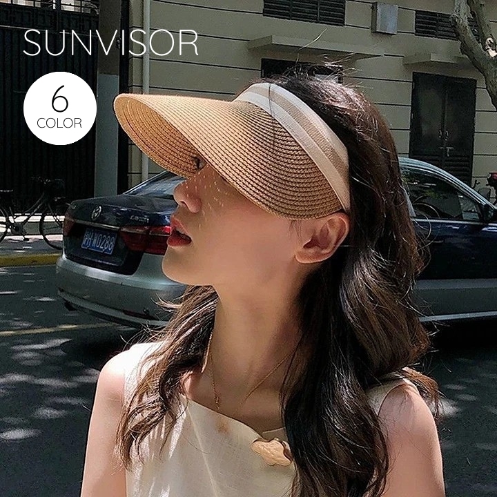 麦わらのレディース用サンバイザー。