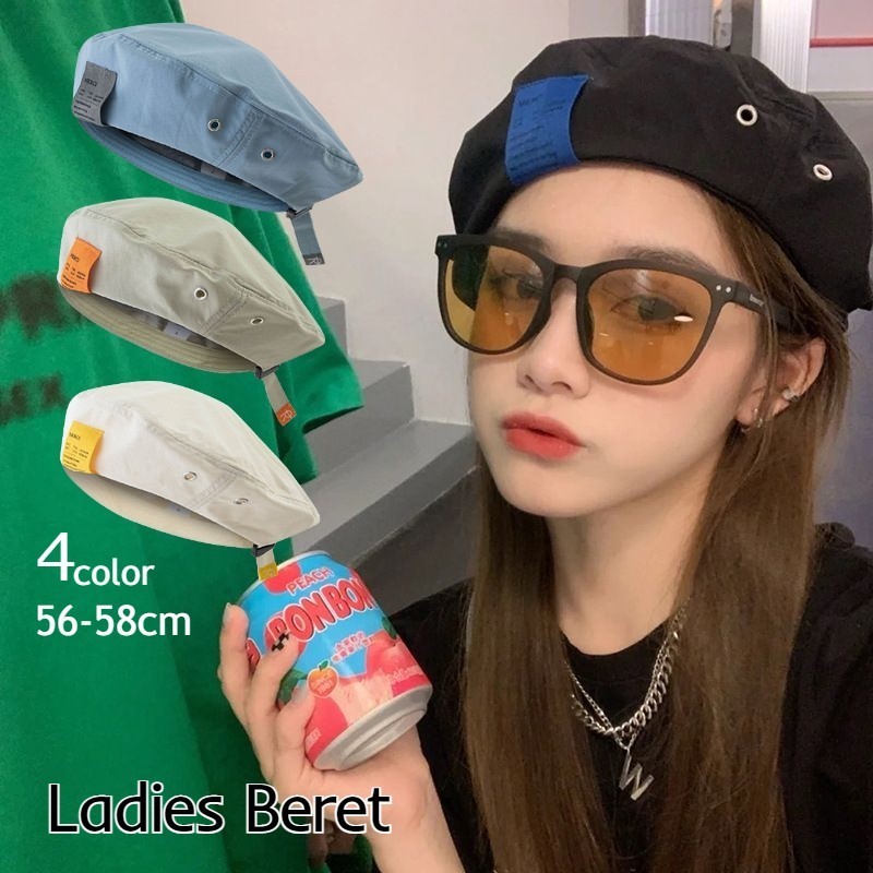 ベレー帽 レディース メンズ 女性 男性 薄手 無地 シンプル 紫外線対策 小顔効果 つばなし タグ 英字 ロゴ 春 夏 男女兼用 ユニセックス デイ