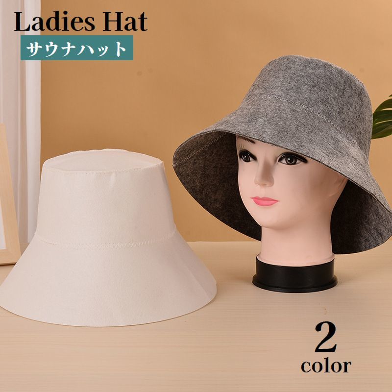 サウナハット 帽子 レディース ぼうし 頭皮保護 のぼせ防止 髪の乾燥防止 フェルト生地 無地 髪の傷み防止 バケットハット バス用品 バスルーム 浴