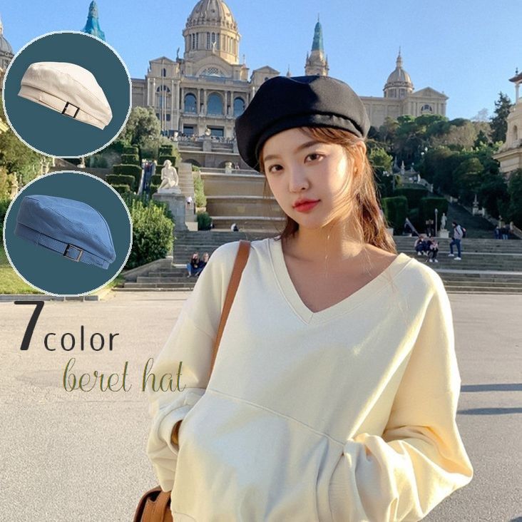 サイドのベルトデザインがこなれ感抜群のレディース用ベレー帽♪