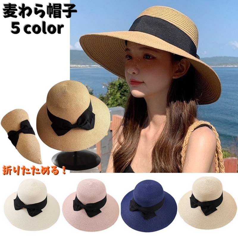 麦わら帽子 キャペリン カペリン カプリーヌ レディース ハット ぼうし ビーチハット つば広 女優帽 折りたためる 持ち運び 日よけ 紫外線対策