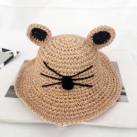 子供用麦わら帽子 耳付き麦藁帽子 ストローハット つば広帽 ツバ広ハット キッズ アニマルフェイス ヒゲデザイン 日よけ 熱中症予防 紫外線対策 UV