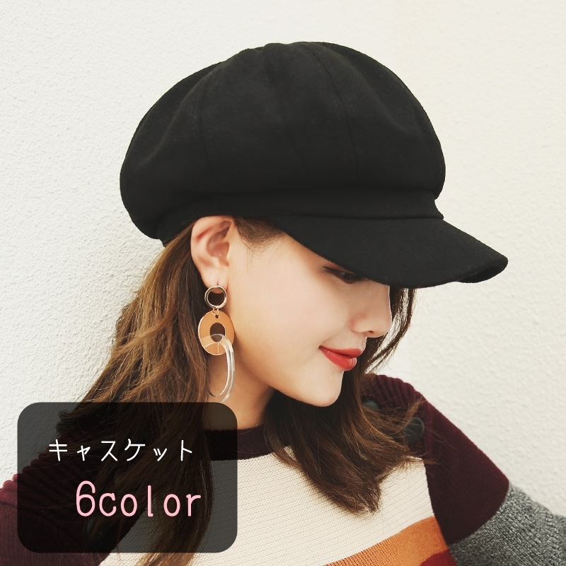 キャスケットハット キャスケット帽 レディース 女性 帽子 ぼうし 丸み 無地 ブラック グレー ネイビー シンプル カジュアル かわいい キュート