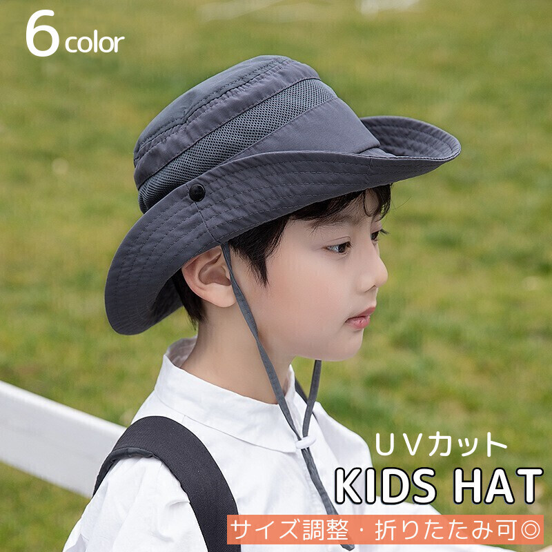 ハット 帽子 キッズ 子供用 男の子 女の子 折りたたみ つば広 サイズ調整可能 通気性 メッシュ 無地 カジュアル シンプル おしゃれ アウトドア