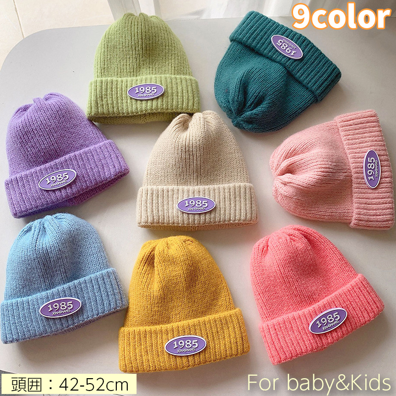 ニット帽 帽子 子供用 ワッチキャップ ビーニー ベビー キッズ 男の子 女の子 赤ちゃん ニットキャップ リブ ロゴタグ付き ぼうし シンプル お出