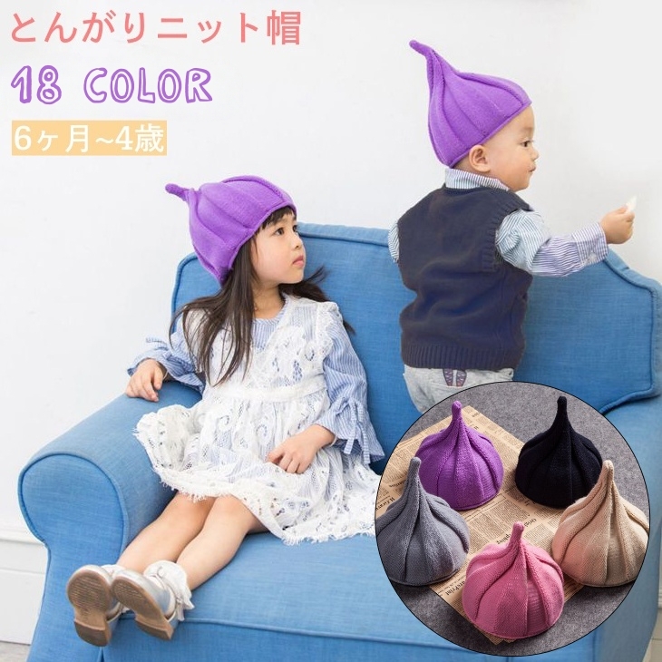ニット帽 ニットキャップ とんがりニット帽 とんがり帽 ビーニー 子供用 キッズ ベビー 女の子 男の子 帽子 ぼうし 伸縮性 無地 単色 シンプル