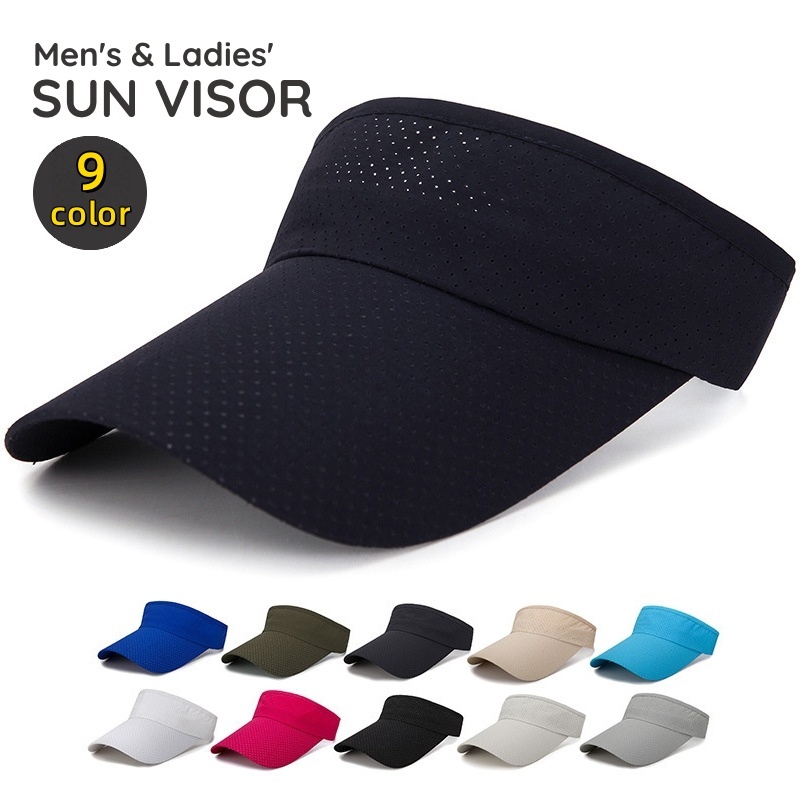 サンバイザー 帽子 男女兼用 メンズ レディース メッシュ 通気性 日よけ 日焼け対策 調整可能 無地 シンプル カジュアル スポーツ 面ファスナー