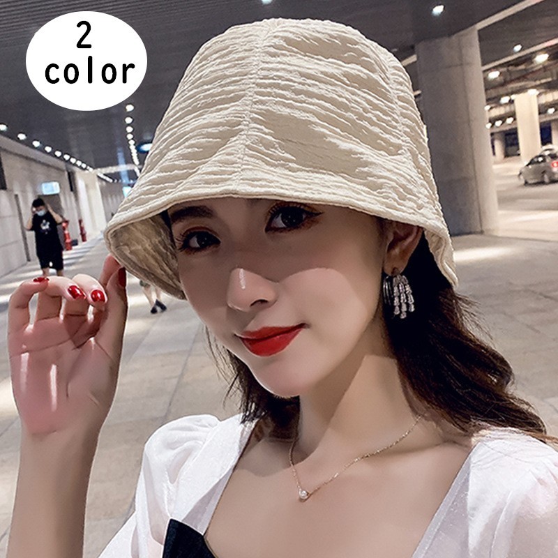 シワ加工デザインのレディース用バケットハットです。