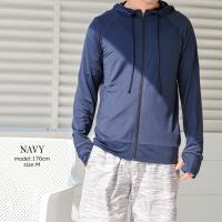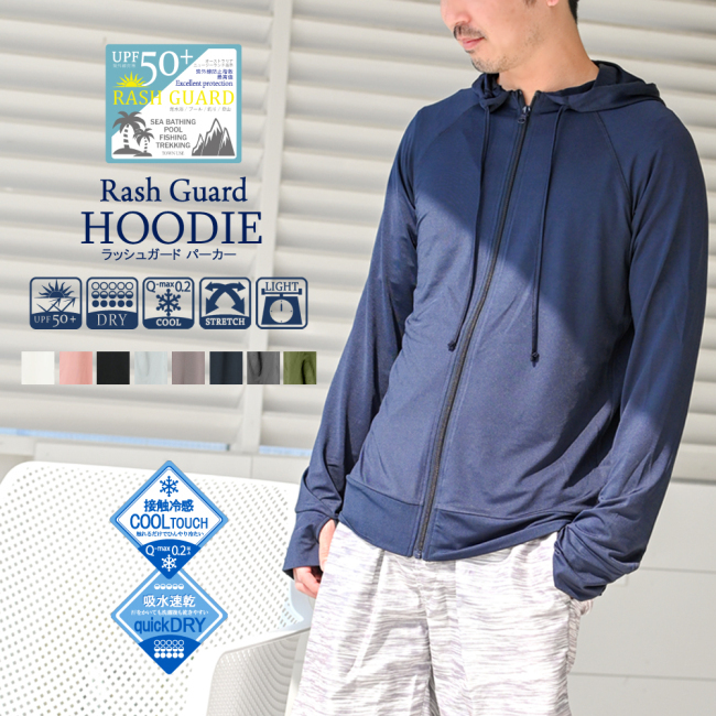 ラッシュガード ラッシュパーカー 長袖 ジップアップ メンズ 接触冷感 UPF50 吸水速乾 指穴付き フィンガーホール 紫外線対策 薄手 ひんやり