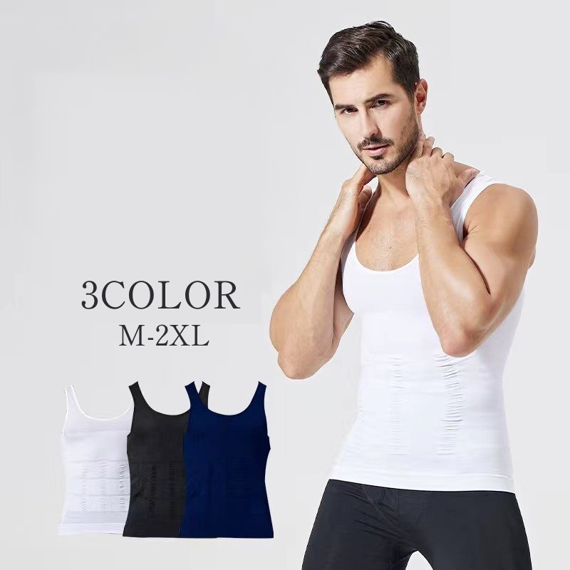 タンクトップ 補正インナー ノースリーブ メンズ 男性 大きいサイズ 2XL ラウンドネック 単色 無地 ストレッチ 伸縮性 通気性 補正下着 アンダ