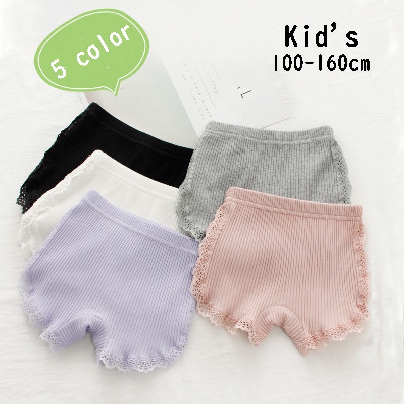 オーバーパンツ ペチパンツ インナー キッズ 1分丈 リブ レース 女の子 女児 シンプル パンツ ペチコート 安全パンツ 見せパン 無地 かわいい