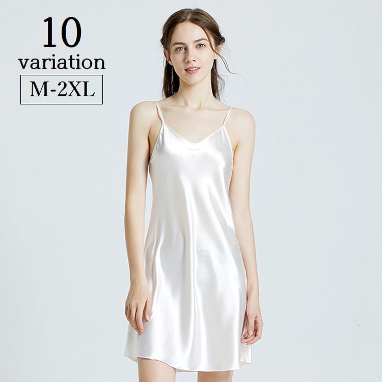 スリップ レディース ランジェリー インナー 肌着 ミニ丈 サテン調 光沢感 大きいサイズあり キャミソールワンピース 透け防止 婦人服 女性用 無地