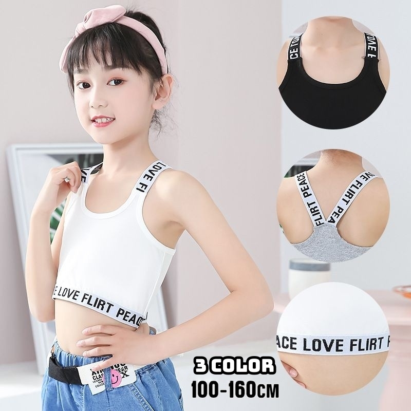 ジュニアブラ スポーツブラ 子供用 キッズ 下着 ブラジャー 無地 英字 ロゴ バッククロス シンプル かっこいい 小学生 中学生 ハーフトップ イン