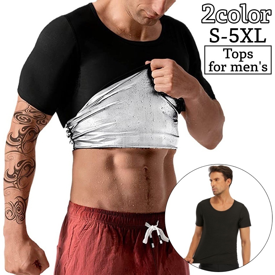 サウナスーツ Tシャツ メンズ 男性 トップス インナー 発熱 ラウンドネック 丸首 スポーツウェア ダイエット スポーツ 減量 お腹痩せ トレーニン