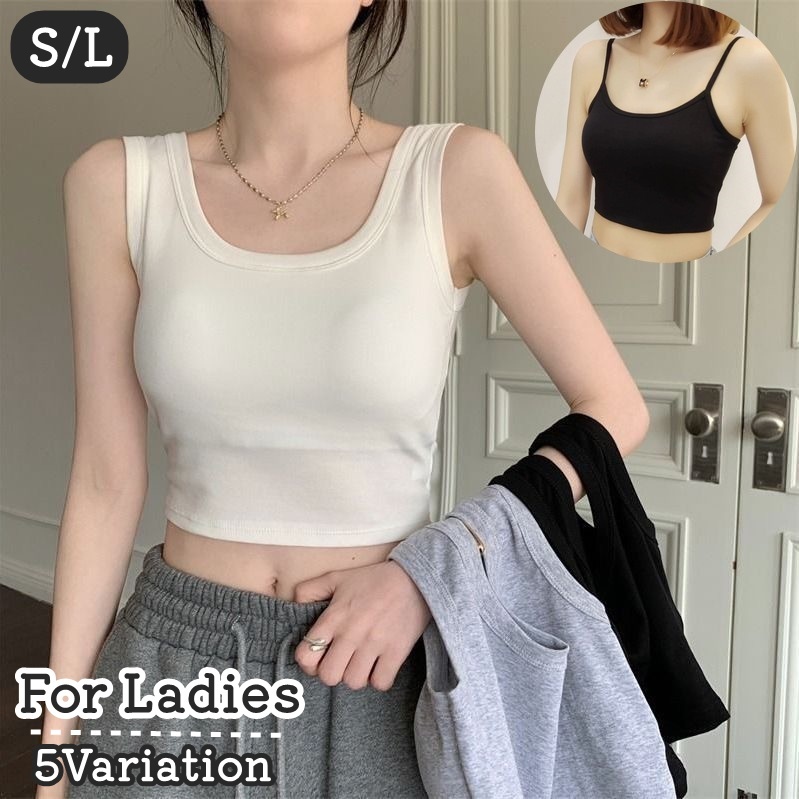 キャミソール タンクトップ レディース 女性 婦人 インナー トップス ノースリーブ ショート丈 袖なし シンプル 無地 タイト スリム 短め 薄手