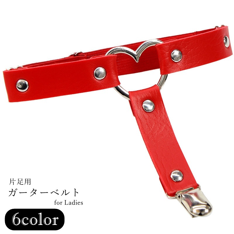 ガーターベルト 片足用 シングル レディース 女性 ファッション雑貨 インナー ゴム付き ハート フェイクレザー 無地 シンプル カジュアル クール