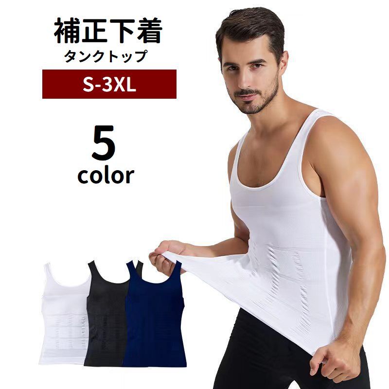 補正下着 タンクトップ メンズ 男性用 インナー Uネック 引き締め ウエスト お腹まわり ぽっこりお腹 大きいサイズあり 上半身 トレーニング ジム