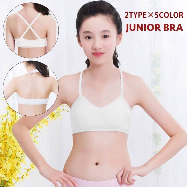 ジュニアブラ キッズブラ ブラジャー 単品 ノンワイヤー カップ付き パッド入り 子供用 小学生 高学年 中学生 インナー 下着 ホルターネック バッ