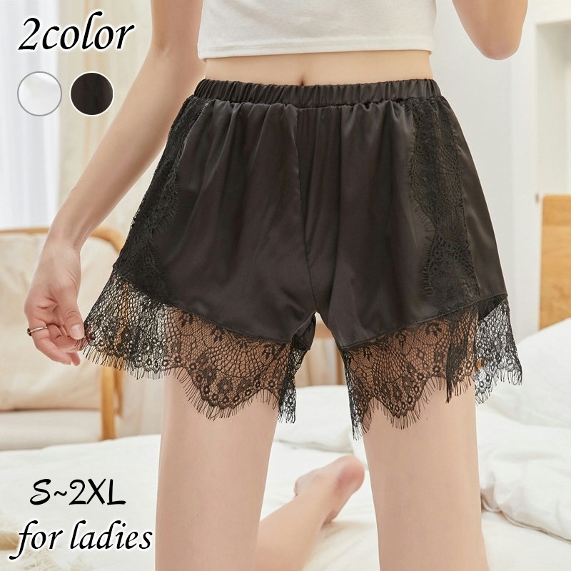 ペチコート ペチパンツ タップパンツ レディース 裾レース 幅広レース インナーショートパンツ 3分丈 女性下着 大きいサイズ有 無地 単色 光沢感