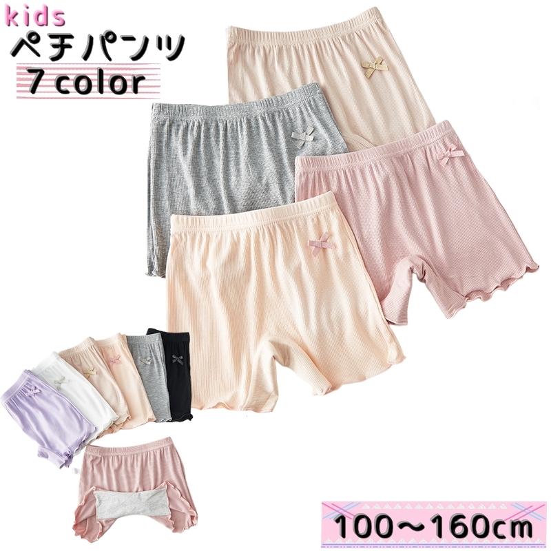 ペチパンツ インナーパンツ キッズ ジュニア 子供 子ども 下着 女の子 スカートの下 リボン 肌着 薄手 フリル カラバリ豊富