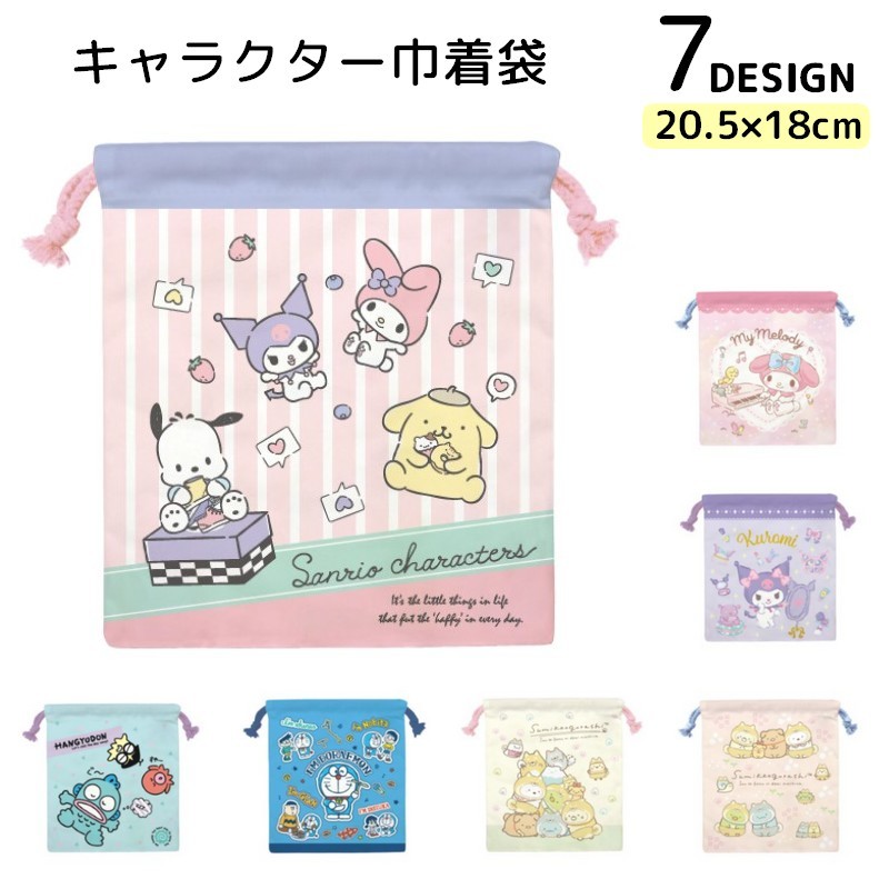 巾着袋 マイメロディ ハンギョドン クロミ ドラえもん すみっコぐらし キッズ 子供 for 小さめ コップ袋 通園 通学 キャラクター かわいい き