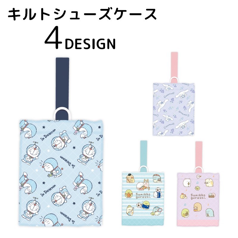 シナモロール、ドラえもん、すみっコぐらしのキャラクターが可愛いシューズバッグ。