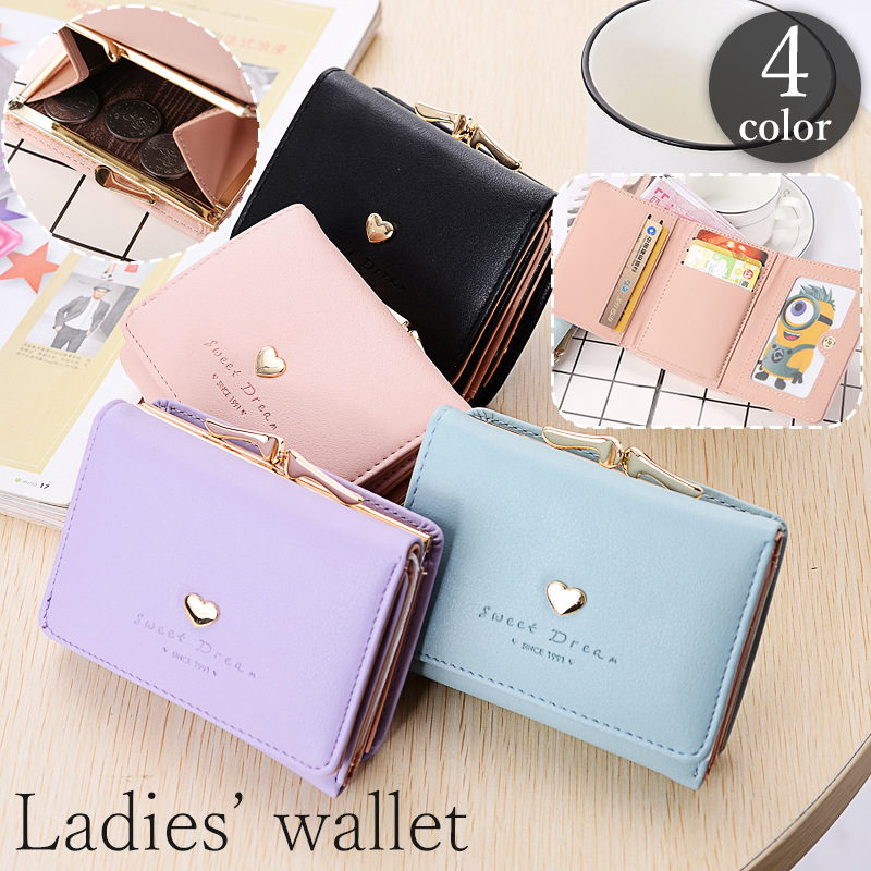 財布 ウォレット 三つ折り がま口 レディース キッズ ジュニア 小学生 中学生 高校生 女性 ハート カード入れ 小銭入れ お札入れ コインケース
