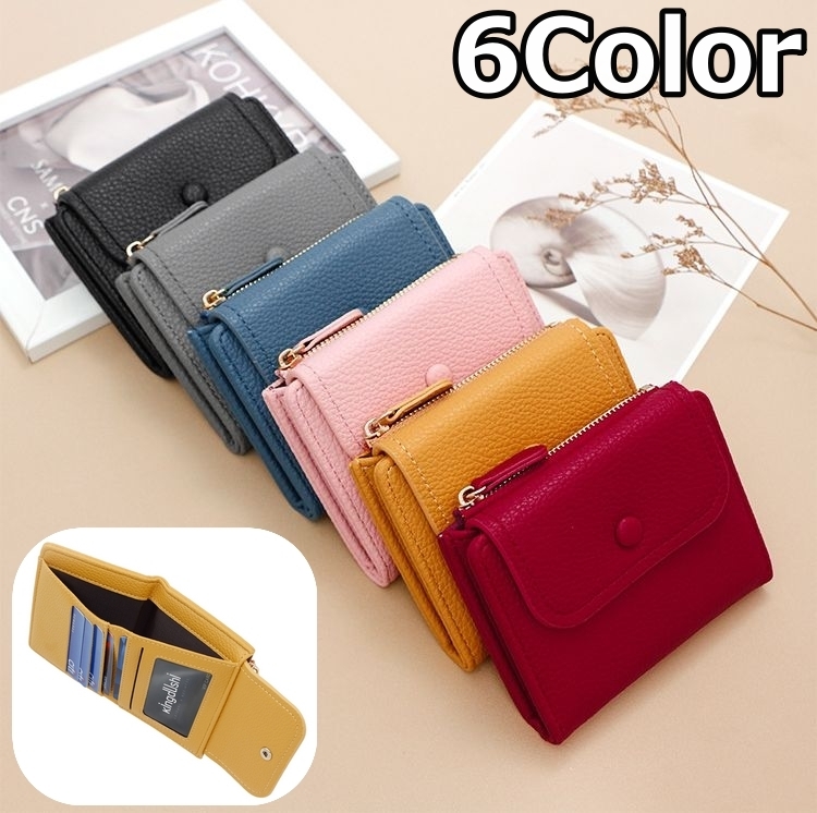 二つ折り財布 ミニ財布 レディース お札入れ 小銭入れ カード入れ 無地 ファスナー 通勤 通学 定期入れ おしゃれ プレゼント