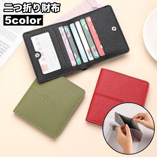 財布 二つ折り 薄型 ウォレット レディース ミニ お札入れ カード入れ レザー調 ボタン 四角形 コンパクト スリム 女性用 婦人用